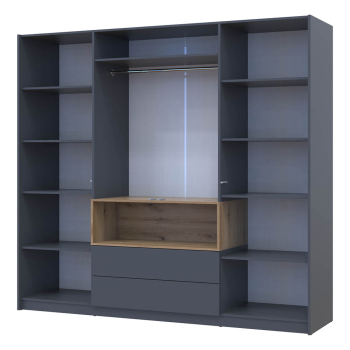 • Продумане наповнення шафи з платтяним відділом, закритими та відкритими полицями гарантує ідеальний порядок і комфорт у використанні.